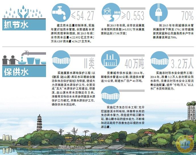 实施“五水共治”,大力推进“污染源治理、防洪保安工程、水源地保护、河网综合整治、亿方引水工程、河口治理开发、水乡文化提升”等“七大工程”,努力把水“蓄起来、连起来、活起来、净起来、美起来、亲起来”,加快打造“湖库相连、江河相通、山水相融、林水相映、城水相依、人水相亲”的美丽浙南水乡,为温州“赶超发展、再创辉煌”创造水优势。
