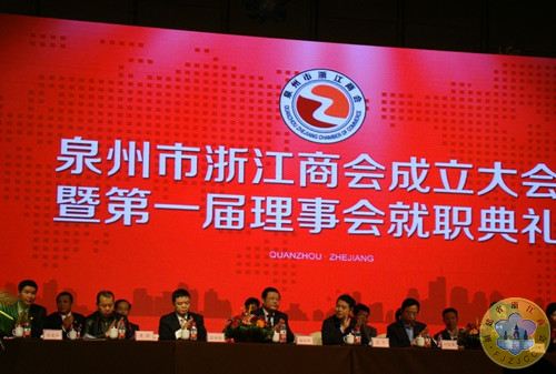 2013年1月19日,“泉州市浙江商会成立大会暨第一届理事会就职典礼”在泉州市万达广场文华大酒店隆重召开。商会的成立受到了闽浙两地各级部门和有关领导及社会各界友好人士、海内外兄弟商会的关心与支持,各行各业纷纷发来贺信、贺电以表祝贺。