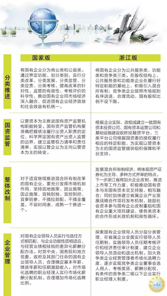 国家版与浙江版国企改革意见对比一览