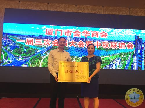 董会长向厦门市金华商会授予团体会员牌