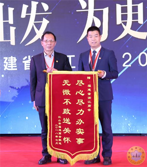 福建省浙江商会自换届以来,在服务会员与服务企业上做了大量的工作,得到了大多数会员与企业家的认可和赞誉,江山市福建商会为感谢福建省浙江商会的关心与支持,专门制作了一面锦旗赠与福建省浙江商会。