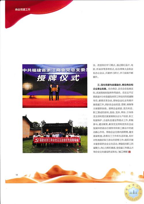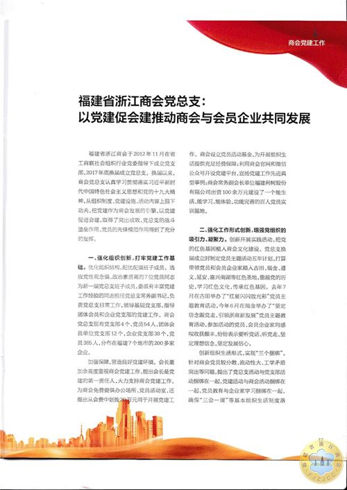 福建省浙江商会党总支《以党建促会建推动商会与会员企业共同发展》的经验以资料形式下发。