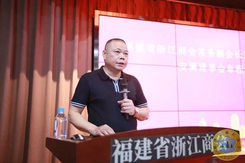 福建省浙江商会常务副会长夏和权宣读安澜理事会章程