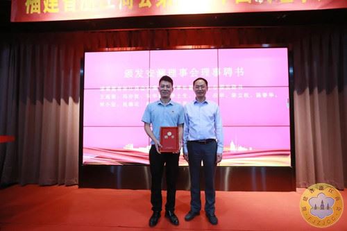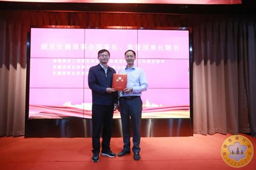 福建省工商联党组成员、行业党委书记、副主席陈建强为董加余颁发安澜理事会理事长聘书