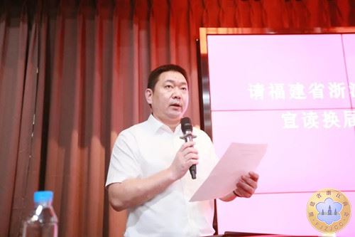 福建省浙江商会党委书记何卫民宣读换届筹备工作领导小组名单,共20人