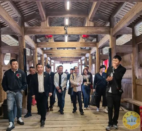 学习讨论会之后,全体人员在当地讲解员的引领下在下党参观学习。首先,参观“世界单拱跨度最长的木拱廊桥——鸾峰桥”。这既是全国文物保护单位,具有很高的文化价值;又是当年习总书记一进下党时,现场办公的场所,更具有崇高的政治意义。桥上悬挂着鲜红的党旗和入党誓词,党员们倍感振奋。