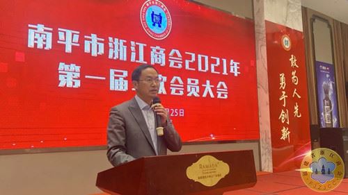 董会长代表福建省浙江商会,对南平市浙江商会第一届二次会员大会的顺利召开表示热烈祝贺。他说,南平市浙江商会积极弘扬浙商精神,超前服务浙商群体,精准投入乡村振兴、慈善公益等社会经济发展事业,疫情以来,聚焦主业、主动作为、多措并举,帮助复工复产,凸显商会作用,赢得了社会各界的高度认可。南平市浙江商会自成立起就加入福建省浙江商会团体会员,一直鼎力支持我会建设发展,积极参与我会各项大小活动,是我会发展进程中的重要份子和中坚力量,愿今后继续相互扶持、深化友谊、抱团发展,愿贵会在徐妙海会长的带领下继续为企业出谋划策、为政府穿针引线、为会员排忧解难、为家乡添砖加瓦,为创造“稳定、和谐、创新、发展”的商会集体,向着建设全国名牌商会的目标而努力奋斗!