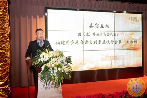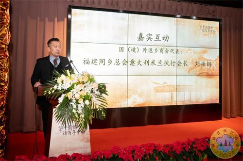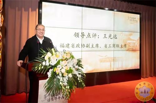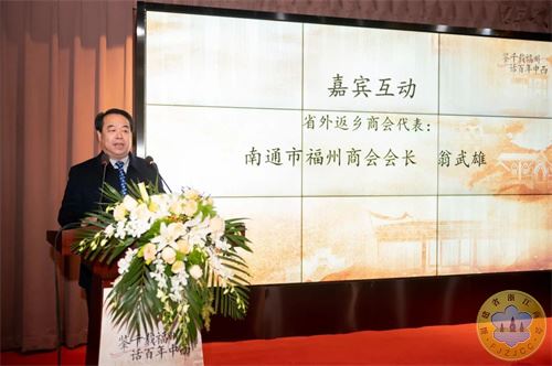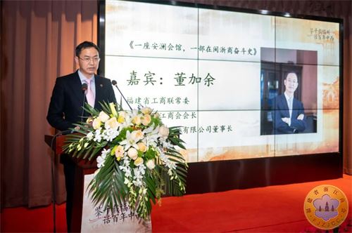福建省工商联常委、福建省浙江商会会长董加余发言。董会长说安澜会馆是在闽浙商百年精神的体现。我们以“乡情、亲情、友情”为纽带,将闽浙人文、中西差异、古今联系、政商关系等进行深度交相融合,对浙商发展的脉络进行一次适时而珍贵的重新梳理,充分展示了闽浙文化、商贾精神,以此熏陶和警醒新一代浙商,不忘初心,争做闽浙文化交融的有力传播者、积极弘扬者和忠实践行者。商会,乃商人之家、商贾之地;会馆,乃文化基地、精神地标,我们的责任与使命就是做好会馆的保护和活化利用,使之成为弘扬两地商贸文化的平台,展示地域文化的博物馆,亦是新时代服务在闽浙商的聚合平台、亲切家园。同时,我们也欢迎大家多来安澜共商合作、共享商机,希望安澜会馆能够成为广大商人们的文化会客厅,祈愿海不扬波,风平浪静,平安兴旺,闽浙安澜!