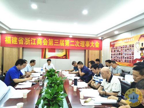 2017年6月10日,福建省浙江商会第三届第二次理事大会在福州顺利召开。来自闽浙两省各地的41位理事会成员齐聚商会大会议室,共商“全国浙商古田论坛暨福建省浙江商会成立十周年庆典活动”方案。大会由秘书长郦均超主持。