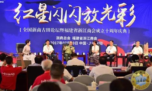 2017年7月9日,全国浙商论坛暨福建省浙江商会成立十周年庆典活动在龙岩市古田镇召开。参加此次活动的领导和嘉宾分别有:福建省政协原副主席、福建省扶贫基金会、福建省扶贫开发协会叶继革会长;福建省人大代表工作委员会翁卡主任;福建省工商联王光远主席;浙江省发展改革委林骏副主任;浙江省工商联党组成员郑宪宏副主席;福建省工商联党组成员陈建强副主席;福建省龙岩市委常委、统战部邓菊芳部长;福建省龙岩市王建生副市长;福建省龙岩市政协副主席、工商联郑玉琳主席。主办方浙商总会沈国军执行会长、浙商总会郑宇民秘书长、福建省浙江商会董加余会长。 参加大会的还有闽浙两省有关部门领导、金融部门领导、全国省级浙江商会、福建省级异地商会、在闽浙籍兄弟商会的会长、秘书长,特邀嘉宾以及新闻媒体记者,共计400余人。