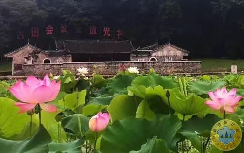 福建上杭,“古田会址”,白墙青瓦,“古田会议永放光芒”八个大字熠熠生辉。