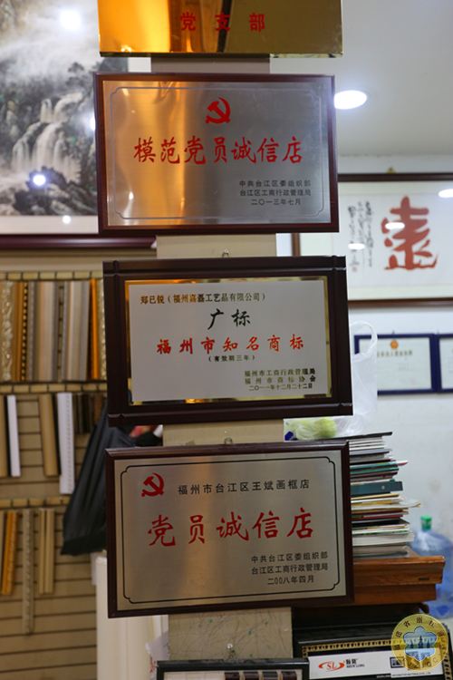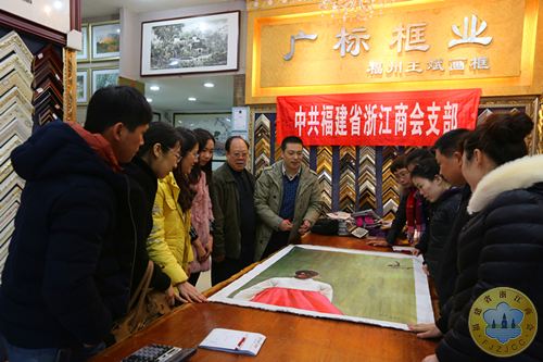 在党务顾问、商会陈作紬秘书长的带领、安排下,中共福建省浙江商会支部党员参观了党支部副书记楼群肖的工作单位,即福建省浙江商会会员企业---福州市嘉磊工艺品有限公司(“王斌”画框),楼副书记由于临时有事出门,就交代她的先生接待了我们,郑先生热情细致地向我们介绍了公司的规模、经营性质和发展情况。福州市嘉磊工艺品有限公司是一家从事工艺美术品、木制线条、装饰线条、装饰画等为主的民营企业,成立至今已有15年了,公司内藏品丰富、各类精美的工艺美术作品琳琅满目,让我们驻足观赏、流连忘返,党员们细细品味着店内的每一幅画作,讨论着自己喜欢的风格,好奇着每项工艺的精致。郑先生说公司从原来的小店发展到如今7个商铺的规模,真要感谢党和国家改革开放后的好政策,特别是党的十八届三中全会出台的多项惠民措施,推动国家经济飞速发展,也让老百姓的衣食住行和生活环境发生了日新月异的变化,相信在习近平同志为总书记新一代的党中央领导下,全国人民的生活一定会越来越好。