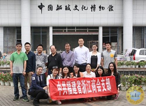 船政文化博物馆为五层建筑,依山而建,建筑面积约8000平方米,馆内陈列分为序厅、船政概览厅、船政教育厅、船政工业厅、海军根基厅、船政名人堂,正面造型为两艘乘风破浪的战舰,象征着马尾作为中国近代海军的摇篮,在近代中国造船工业和海军发展史上占有的重要地位,气势磅礴,颇具现代建筑风格。该馆通过大量珍贵文物、图片、模型以及各种仿真场景,展示了中国船政在近代中国先进科技、新式教育、工业制造、西方经典文化翻译传播等方面取得丰硕成果,体现了诸多仁人志士及其先进思想,折射出中华民族特有的砺志进取、虚心好学、博采众长、勇于创新、忠心报国的传统文化神韵。通过大量详实的船政历史图片资料和详细的解说,大家都对船政文化有了更深层次的理解和认识。第一站参观结束时,福建省浙江商会全体党员和入党积极份子在船政文化博物馆大门口合影留念,也留下了我们今年五四青年节别样的风采。